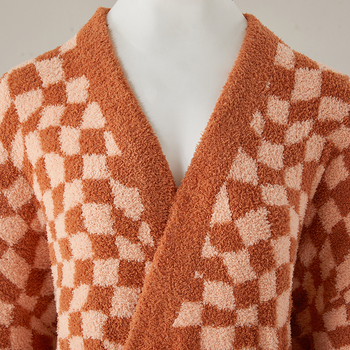 Accappatoio di lusso personalizzato verde magico da donna bianco nero con stella accogliente in maglia accappatoio da donna a scacchi oversize